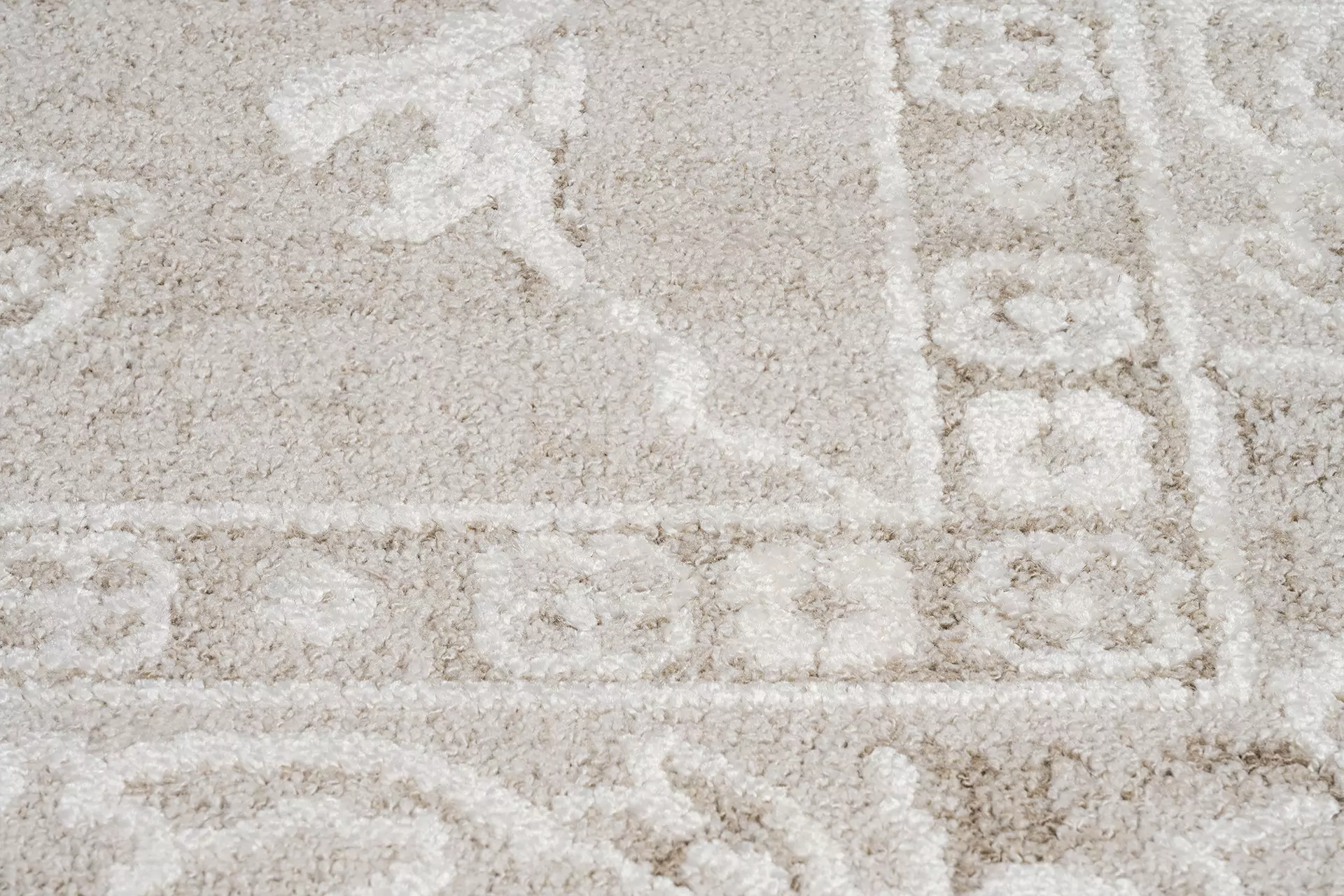 Dzięki wysokiej gęstości runa (243 200 pkt/m²) wzory są wyraźne, a powierzchnia dywanu prezentuje się solidnie i estetycznie.